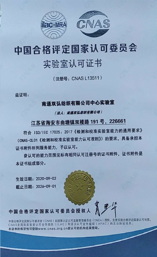 Kể từ khi giới thiệu công nhận CNAs, Phòng thí nghiệm trung tâm của Double Great Company đã liên tục cải thiện các yếu tố quản lý khác nhau, kiểm toán nội bộ có tổ chức và đánh giá quản lý. Sau hơn hai năm hoạt động, sự trưởng thành của quản lý đã được cải thiện liên tục. TRONG Tháng bảy 2020 , CNAS Các chuyên gia công nhận đã tiến hành kiểm toán tại chỗ của Phòng thí nghiệm trung tâm của Double Great Company. Nhóm chuyên gia đã khẳng định đầy đủ khả năng quản lý hiệu quả của phòng thí nghiệm, các tài liệu thủ công hoàn chỉnh và hoạt động và thử nghiệm được tiêu chuẩn hóa. TRONG Tháng 9 2020 , Phòng thí nghiệm trung tâm của Double Great Company đã thông qua đánh giá chuyên gia và có được CNA giấy chứng nhận. Điều này chỉ ra rằng khả năng kiểm tra sản phẩm sợi và sợi của công ty gấp đôi đã được nhà nước công nhận và dữ liệu thử nghiệm có thẩm quyền hơn.