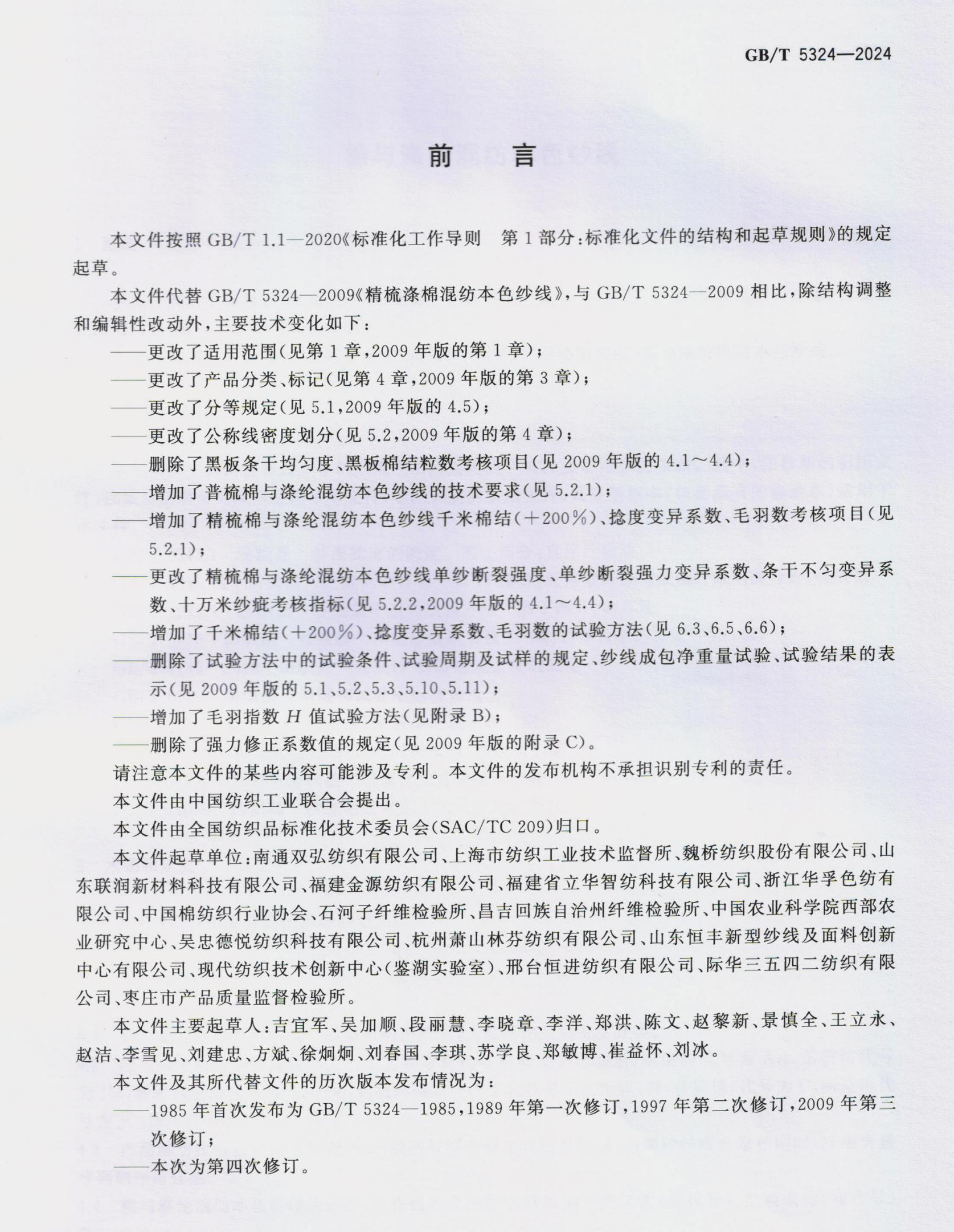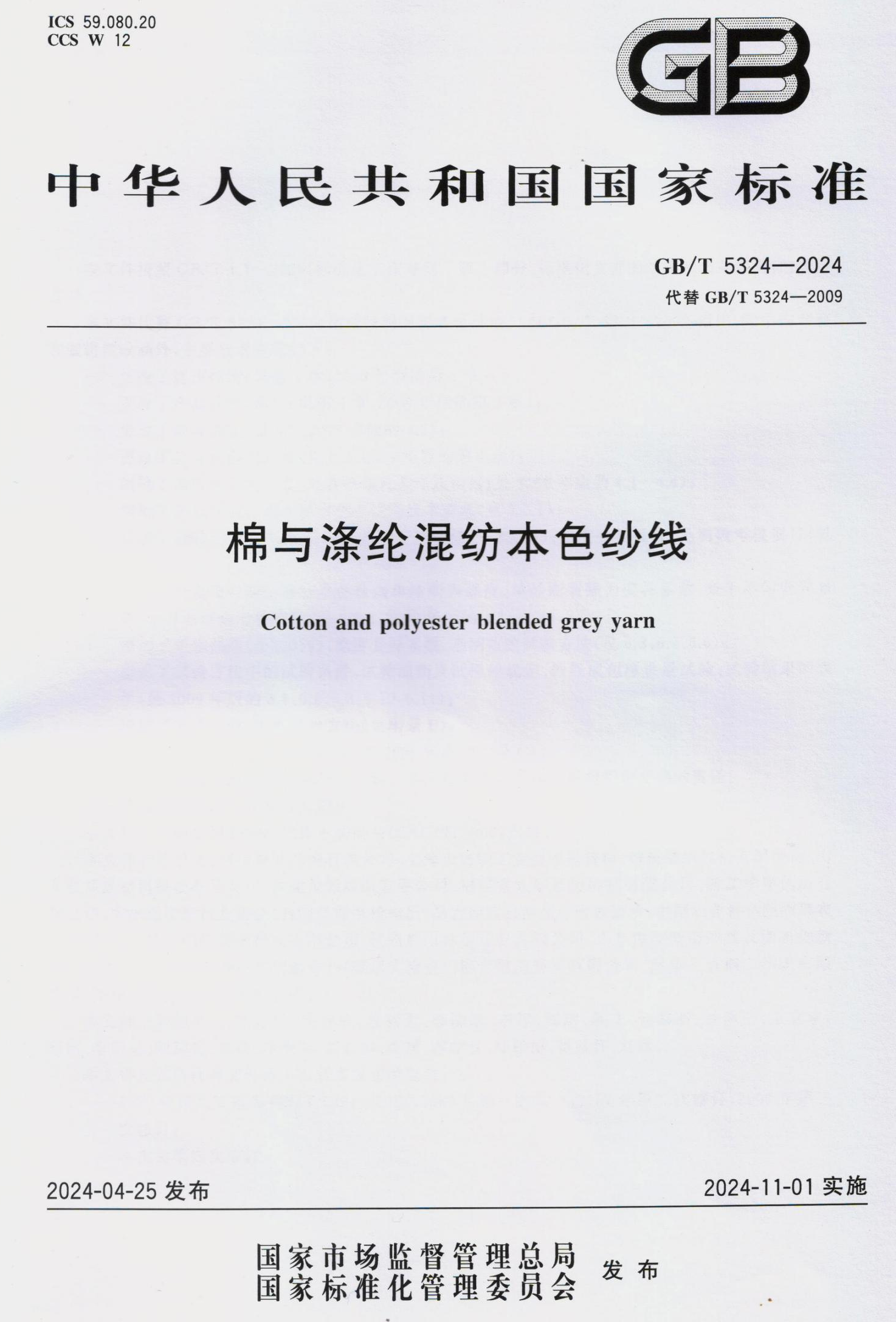 Tiêu chuẩn quốc gia GB/T 5324-2024 "Cotton và Polyester pha trộn sợi tự nhiên" Được soạn thảo bởi Công ty đôi tuyệt vời sẽ được thực hiện chính thức vào ngày 1 tháng 11 năm 2024.