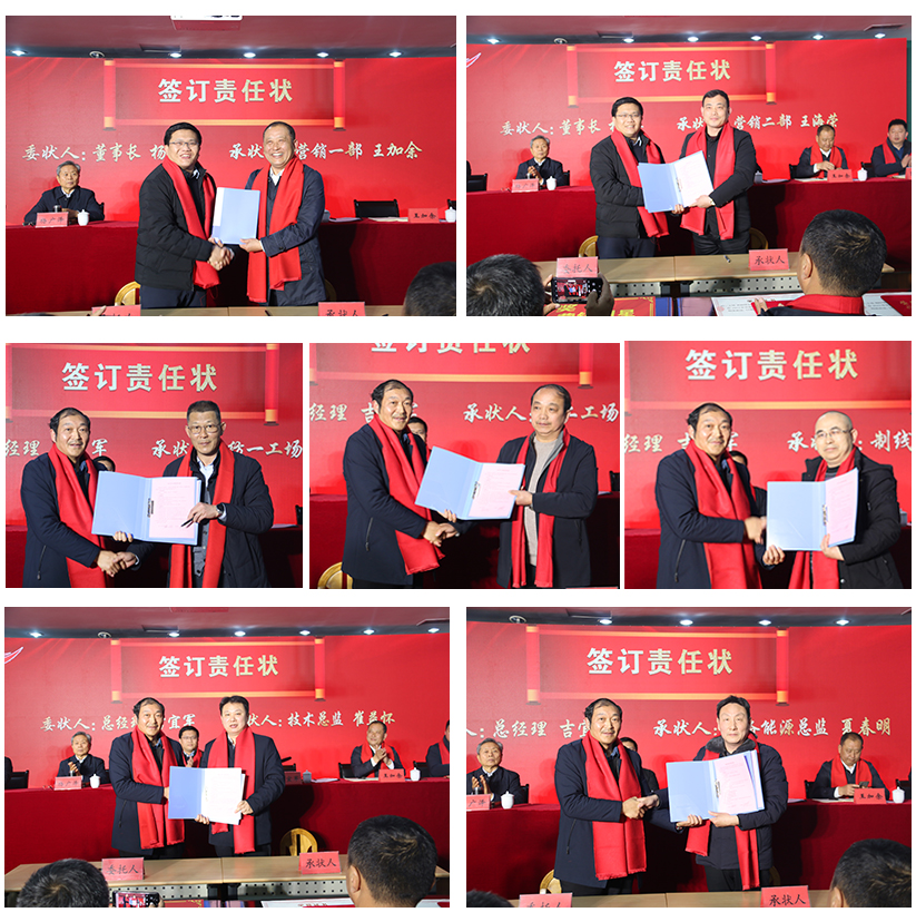 Tại cuộc họp, người đứng đầu bộ phận tiếp thị đã ký một lá thư trách nhiệm mục tiêu tiếp thị với Chủ tịch Yang Yang, và người đứng đầu hội thảo sản xuất, công nghệ, thiết bị và các bộ phận khác đã ký nhiệm vụ sản xuất và thư trách nhiệm chính với tổng giám đốc Ji Yijun.